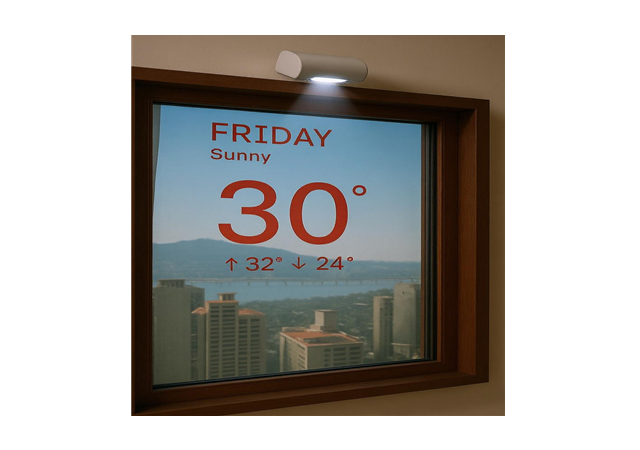 Compared with conventional LCD panels that separate information from the actual scene and often obstruct visibility, this transparent HUD harmonizes with its surroundings and delivers space-aware visual guidance right where users are looking.