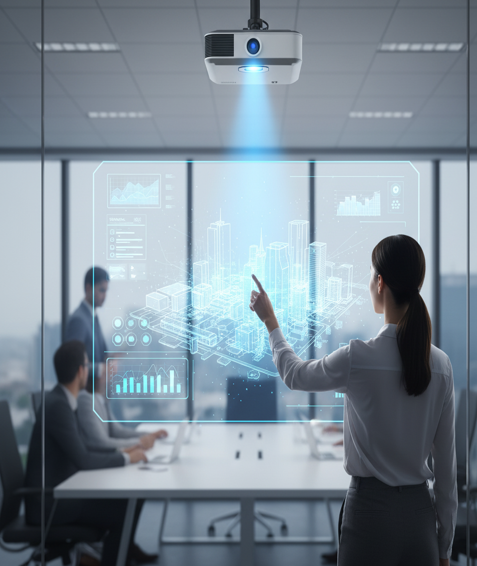 Use any existing transparent window or glass panel. Our solution transforms any ordinary glass into an immersive holographic display without the need for structural changes.